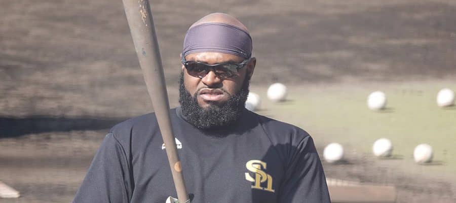 ソフトバンクのキャンプに参加しているコートニー・ホーキンス【写真:福谷佑介】