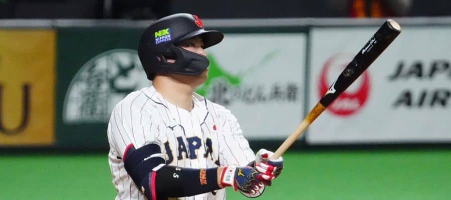侍ジャパンは初回、失策も絡み1点を失ったが、2回1死二、三塁で巨人・岡本和真内野手の2点中前打で逆転に成功した。さらに5回2死一塁で村上が右翼席に2ラン。6回にも打者9人の猛攻で4点を追加した。