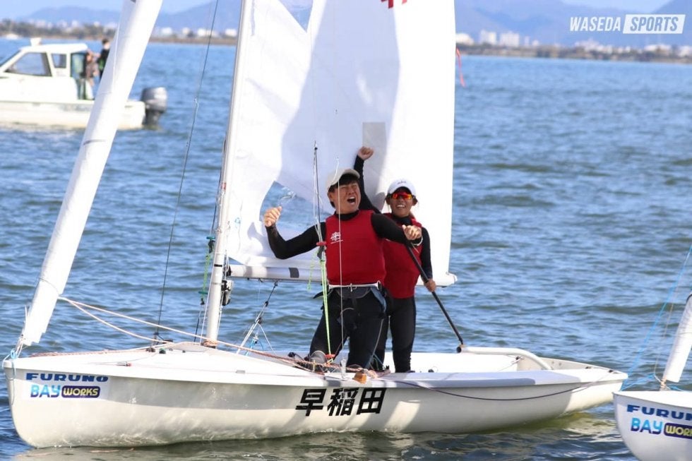 琵琶湖の湖上に臙脂色の校旗がたなびき、空には『紺碧の空』が響いた。最終日こそノーレースとなったものの4日間にわたる大会を終え、470級2位、スナイプ級1位を収めた早大。総合では2位の同大(同志社大学)と200ポイント以上の差をつける大勝で日本一に輝いた。今回の優勝で悲願の全日本学生選手権(インカレ)3連覇を達成。特殊な環境と言われる琵琶湖インカレではこれまで地元の大学の優勝しか見られなかったため、関東勢では初の快挙ともなった。