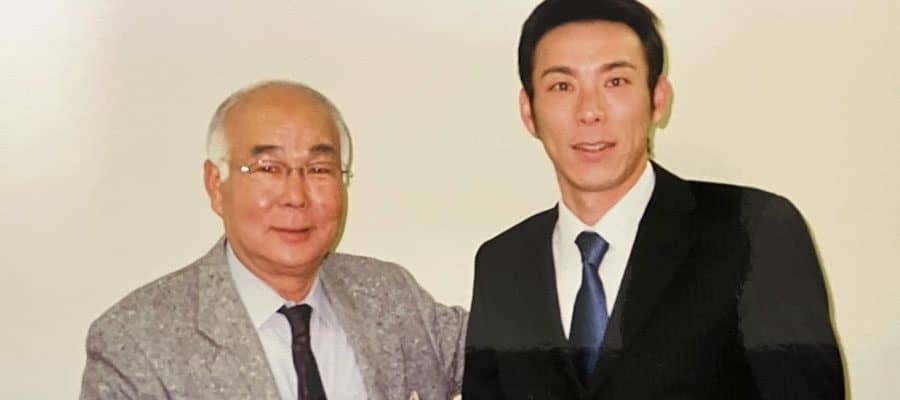ドラフト1位指名された中日・荒木雅博氏(右)と担当スカウトをしていた早川実氏【写真:早川氏提供】