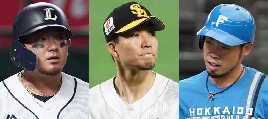 西武・森友哉、ソフトバンク・千賀滉大、日本ハム・近藤健介(左から)【写真:荒川祐史】