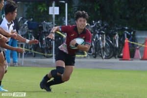 巧みなステップで相手ディフェンスを突破するWTB磯崎