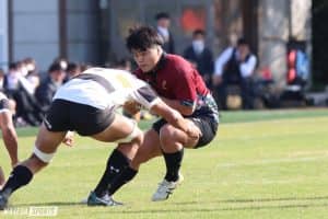 相手と対峙するフッカー安恒。体を張ったプレーでチームを勝利に導く