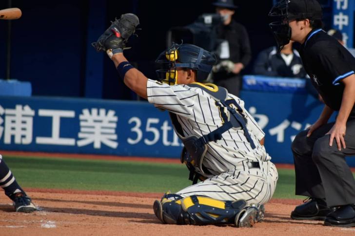 打撃においてもクリーンアップに定着し、大学では公式戦通算10本塁打(※1年春の関甲新リーグ戦は新型コロナウイルス感染拡大防止のため中止)。今大会は、初戦の日体大戦で二番手投手の初球を叩き、特大の2点本塁打を放った。ボールがバットに弾かれた瞬間の音は大学野球ではなかなか聞くことのない強さで、空高く上がった打球がゆっくりとレフトスタンド中段に落ちていく様子は圧巻だった。