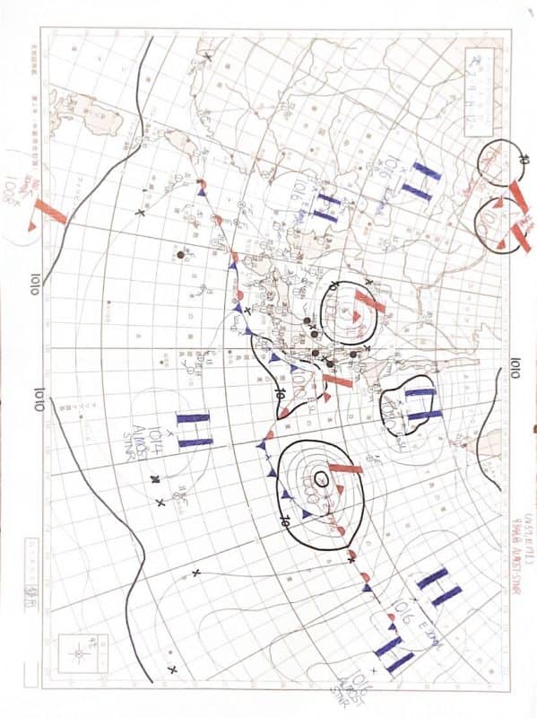 鎌形 天気図というのは、よくネットニュースとかに出ているような地上天気図なんですけど、ラジオで気象通報というのを毎日午後4時からやっているので、それを聞きながら用紙に自分で書き込んでいくという感じですね。