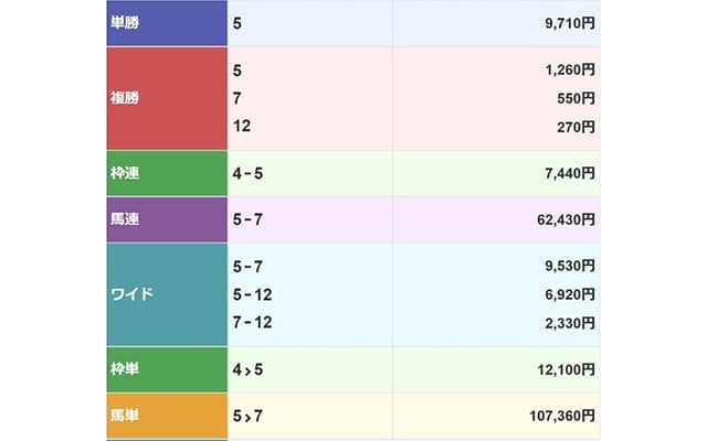 11月14日大井5Rの払戻一覧