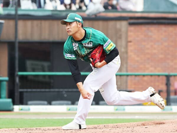 今年のトライアウトには、計26人の投手が参加していた。本格派から技巧派、変則投げまでバラエティーに富んだ投手が集まるなか、この日、最速となる150キロを計測したのは、緑色のユニホームに身を包んだ大柄な右腕だった。