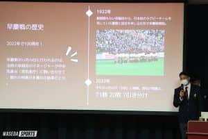 近年、早大生の早慶戦離れが重視されている。その中で、開催された本イベントは、早大生に早稲田スポーツの魅力を伝える貴重な機会となっただろう。100周年の節目を迎えるラグビー早慶戦も、いよいよ約1週間後に迫った。今年度も11月23日14時、秩父宮ラグビー場にてキックオフとなる。いち早大生として、会場の独特な雰囲気と共に両校の熱きプライドがぶつかる伝統の一戦を是非現地で観戦してみてほしい。