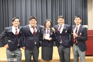吉村副将、岡﨑、佐藤、川下主務が順に自己紹介をし、本イベントは開始。自身の強みや役割を話した後は、ラグビーのルールや早慶戦の歴史など、選手中心で説明が行われた。昨年度の早慶戦にて、存在感を大いに示しPOMを獲得した佐藤は、「2年連続のPOMを狙って今年も勝ちたいと思います」と一言。ラグビー蹴球部による観戦説明が終わった後には、早大応援部による校歌や選手一人一人への激励が送られた。中盤には、参加者とのアイスブレイクで親睦を深め、会場には笑顔がちらほら見える場面も。最後には、〇✕クイズが行われ、選手の直筆サインが9名の参加者にプレゼントされた。
