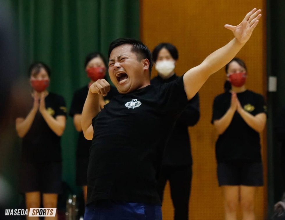 「氣合」「根性」みたいなのを意識してやっていました。最後の『コンバットマーチ』では普段はファンファーレを入れてリーダーやチア(チアリーダーズ)が突きをしないので、あまり追い込みができないなと思ってファンファーレをそこまで入れないようにしました。打楽器やパーカッションを使っている『ミニ早稲田コール』もあまりサインを出さないように富山(智恵理応援企画責任者、政経4=埼玉・早大本庄)に頼みました。あとは後期は最終回に『紺碧』(『紺碧の空』)をエンドレスでやっていることを意識して、最後に『紺碧』をエンドレスでやりました。短い時間でしたが、いろいろやれたのは良かったと思います。