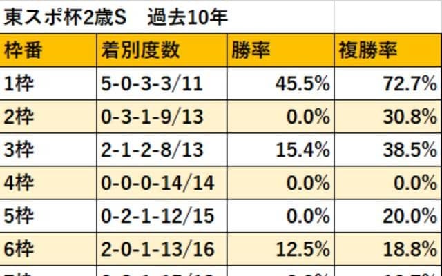東スポ杯2歳Sを過去10年の枠順から徹底分析! 圧倒的に内有利で1枠の複勝率は驚異的 | その他競技