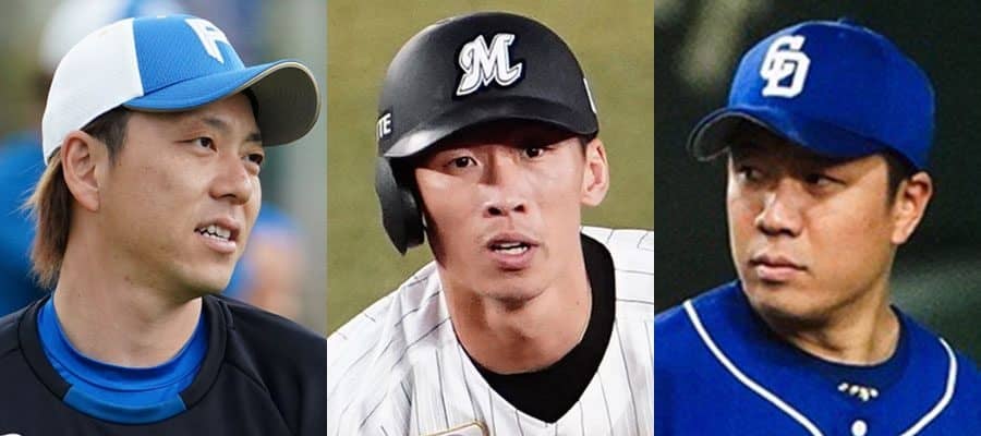 日本ハム・宮西尚生、ロッテ・高部瑛斗、中日・大野雄大(左から)【写真:荒川祐史】
