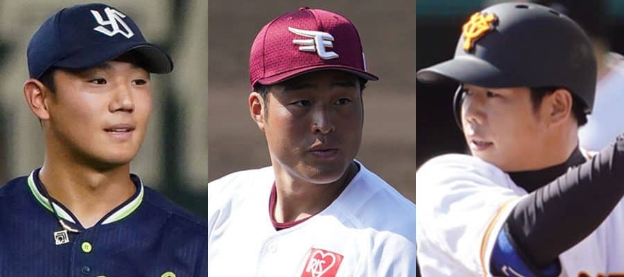 ヤクルト・奥川恭伸、楽天・瀧中瞭太、巨人・松原聖弥(左から)【写真:荒川祐史】