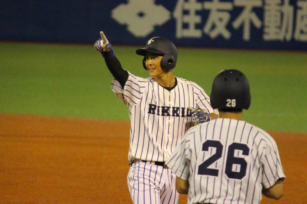 すると立教大は8回、ここまで無失点に抑えられてきた左腕の中川一斗投手(4年・玉野光南)から山根佑太外野手(4年・浦和学院)がレフトスタンド中段に飛び込む本塁打で2点を返す。