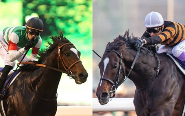 現役時のエピファネイア(左)、キタサンブラック(右)(撮影:下野雄規)