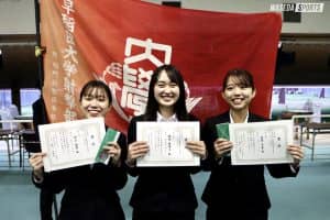 須田智晴(先理4=茨城・茗渓学園)、廣島温弓(法4=東京・早実)、吉間民音(教育4=岡山・津山)