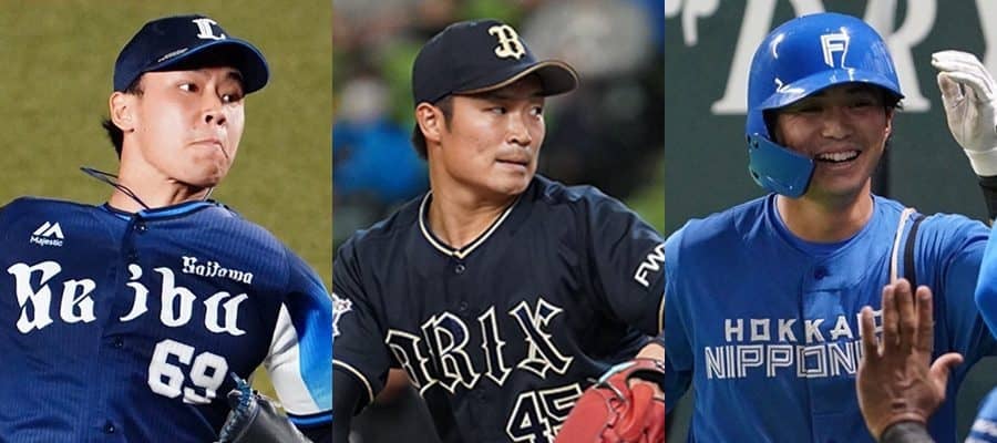 西武・水上由伸、オリックス・阿部翔太、日本ハム・上川畑大悟(左から)【写真:荒川祐史】