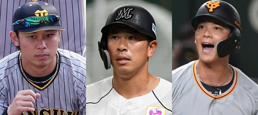 阪神・高山俊、ロッテ・角中勝也、巨人・石川慎吾(左から)【写真:荒川祐史、小林靖】