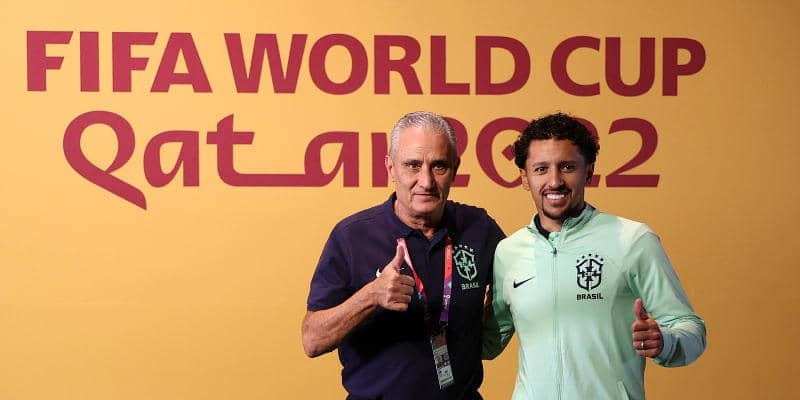 ブラジル代表のチッチ監督とDFマルキーニョスがカタール・ワールドカップ(W杯)グループG第2戦のスイス代表戦に向けた前日…