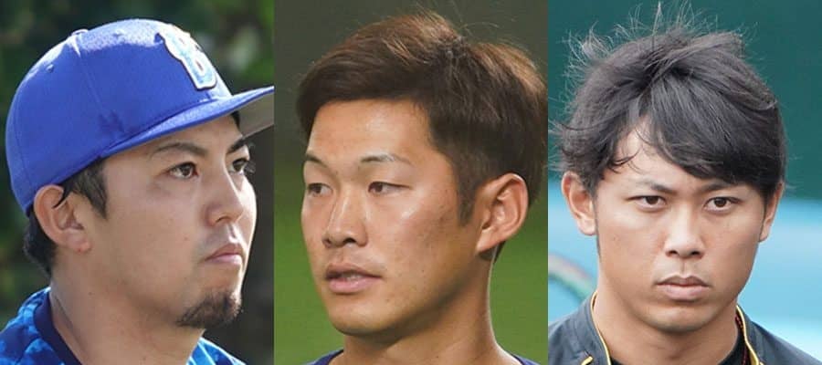 DeNA・東克樹、DeNAに移籍した京田陽太、阪神・高山俊(左から)【写真:町田利衣、荒川祐史】