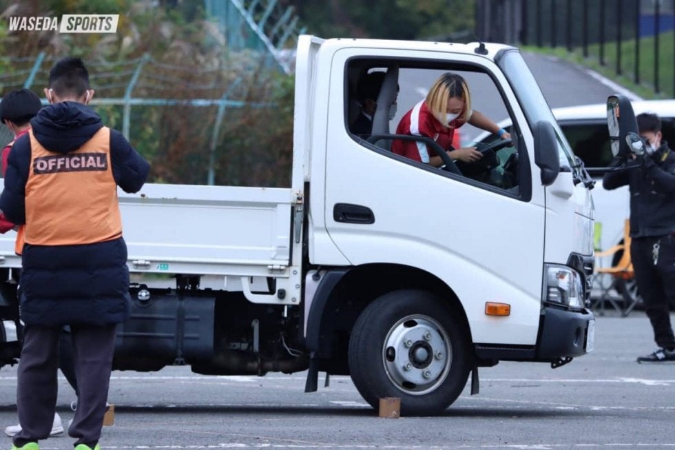 女子乗用の石山萌乃(文構3=神奈川・日女大付)は、「とてもじゃないけど良い走りとは言えない走り」だったと振り返った。しかし、練習で課題としていた「タイムは出るけど、ペナルティしてしまう」という走りを本番では改善。同乗減点があったもののそれ以外の減点のない安定した走りで優勝を決めた。小林眞緒(創理3=福岡雙葉)は貨物に出場。今大会、「昨年度の優勝者として勝たないといけない」、「負けることが許されないような状況」だったと話した。緊張で「震えた状態でずっと6分間くらい運転していた」と自身の走りを振り返ったが、2位の選手に30秒以上の差をつける圧倒的な速さでゴール。女子貨物の部で優勝し、今年の全日本戦全てで優勝を成し遂げた。