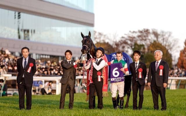 中団馬群につけたヴェラアズールが馬群を縫って進出し、ゴール直前でシャフリヤールを交わして快勝しました。今年の正月までダート路線を歩んでいた馬です。3月に芝転向後、[4-0-2-0]という成績でジャパンCを制覇しました。GI初挑戦での快挙であり、あらゆる意味で型破りな馬といえます。