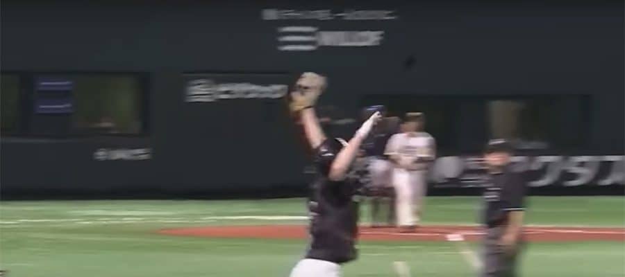 ボールボーイ上手すぎて「則本笑ってる」 楽天生命“No.1美技”が「普通に守備」