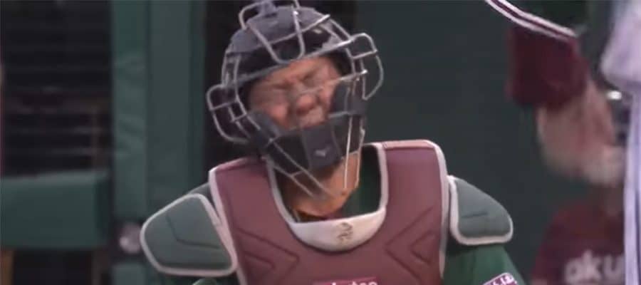 【実際の映像】立てない楽天・炭谷を見下ろし「山川ちょっと嬉しそう」 今季屈指の“悲劇”が「災難すぎ」