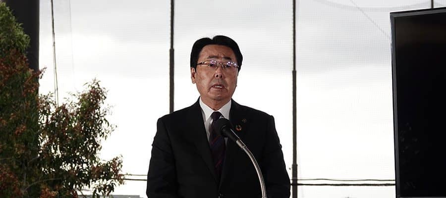 4軍制導入発表会見に参加した西田正治・筑後市長【写真:福谷佑介】