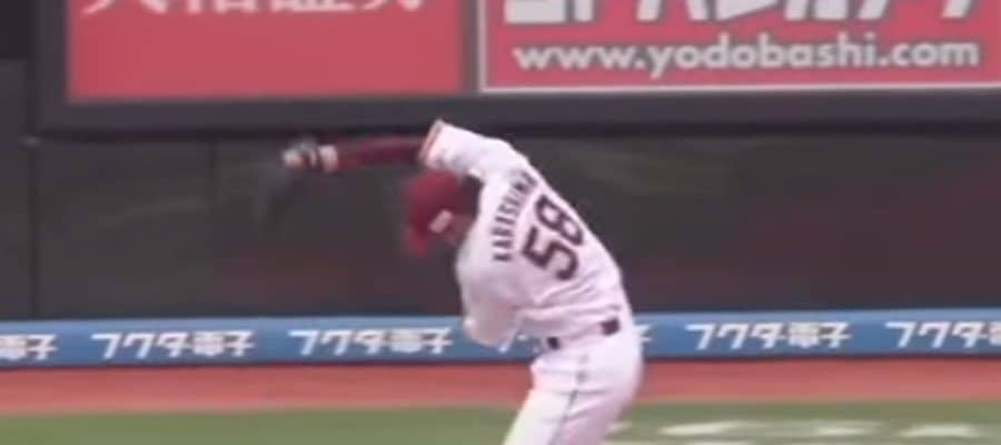 【実際の動画を見る】「異次元すぎる」楽天・辛島が襲ってくるライナーをつかみ取った超美技