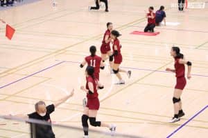 負ければ終わり、背水の陣で挑んだ第3セットは、早大のギアが一段上がった。出だしこそ3連続得点を許したものの、神庭有花(先理4=埼玉・市浦和)のブロックポイントや、中澤の2本のサービスエースを含む連続得点で5-3とし、この試合で始めて先行する。このセットは取れる、それだけの勢いがあった序盤だが、相手も巧みにブロックアウトを取りにいくなど猛追し、逆転。神庭の鋭いクイックで13-13としたものの、5連続失点で14-19となり終盤へ。柴田のダイレクトボールの押し込みで勢いづいた早大だが、帝塚山の壁は高く、ストレート負けを喫した。
