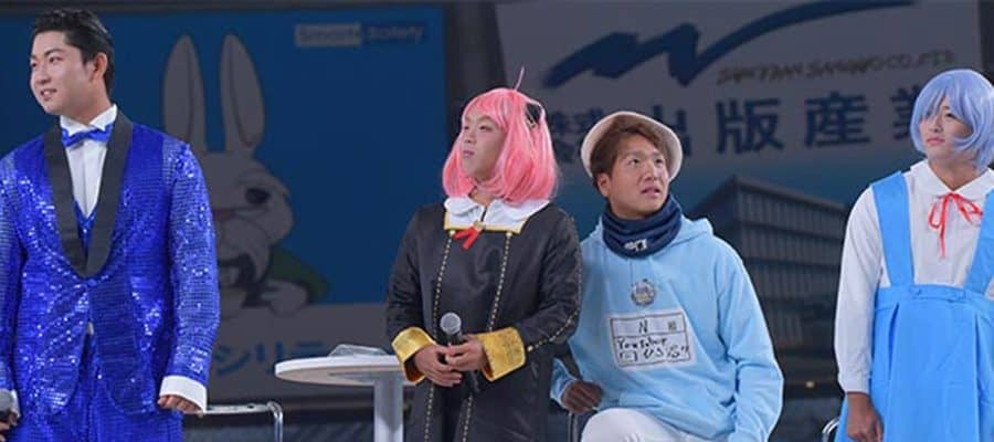 2枚目は各クラスの選手がコスプレをして登場。渡部健人内野手は『ドラえもん』のジャイアン、長谷川信哉内野手は『ONE PIECE』のサンジ、古賀悠斗捕手は演歌歌手の大江裕さん、滝澤は『SPY×FAMILY』のアーニャ、佐藤隼輔投手は『新世紀エヴァンゲリオン』の綾波レイとしてモデルになった。