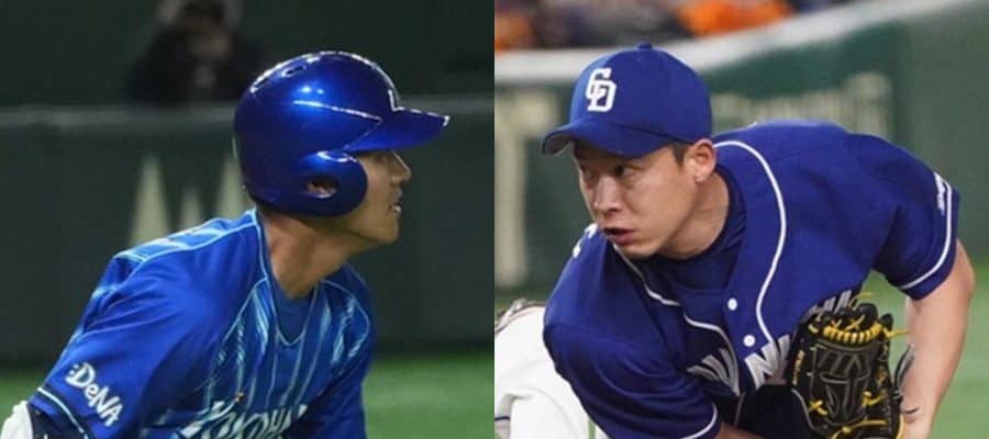 DeNA・田中俊太(左)と中日・岩嵜翔【写真:荒川祐史】