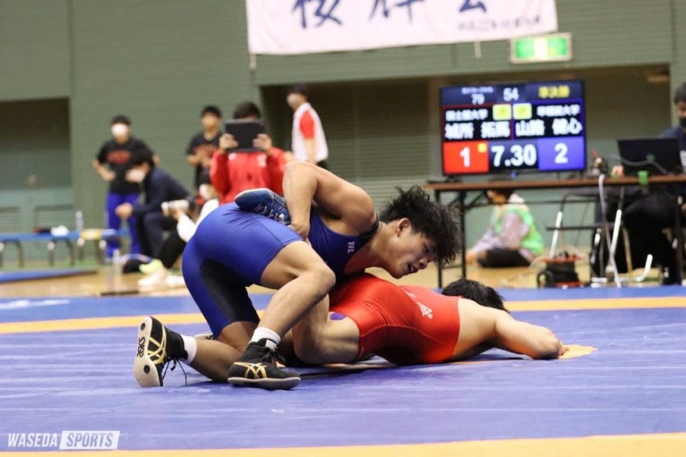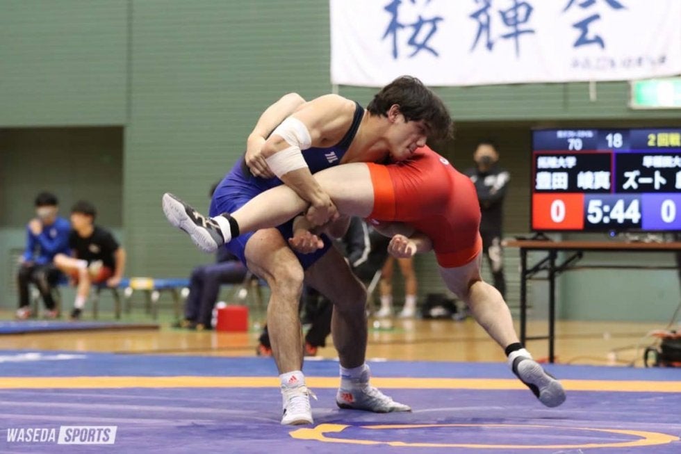 11月28〜30日にかけて、天皇杯全日本選手権(全日本選手権)の出場権をかけた最後の大会、東日本学生秋季選手権が開かれた。早大からは、新人戦グレコローマンスタイル(GR)97キロ級に北脇香(スポ1=山梨・韮崎工)、新人戦フリースタイル(FS)-A70キロ級にズート麟(政経2=東京・アメリカンスクール・イン・ジャパン)、新人戦FS-A79キロ級に山路健心(社1=和歌山北)、新人戦FS-B61キロ級に吉澤禅(文1=埼玉・早大本庄)、選手権GR63キロ級に谷口虎徹(社3=和歌山北)、選手権FS61キロ級に島谷侃(スポ4=秋田商)が出場した。結果は、島谷、北脇、山路の3人が優勝、谷口、吉澤の2人が準優勝、ズートが初戦(2回戦)敗退であった。