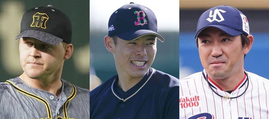 阪神の駐米スカウトに就任するジェリー・サンズ氏、育成契約を結んだオリックス・中川颯、ヤクルト時代の内川聖一氏(左から)【写真:荒川祐史】