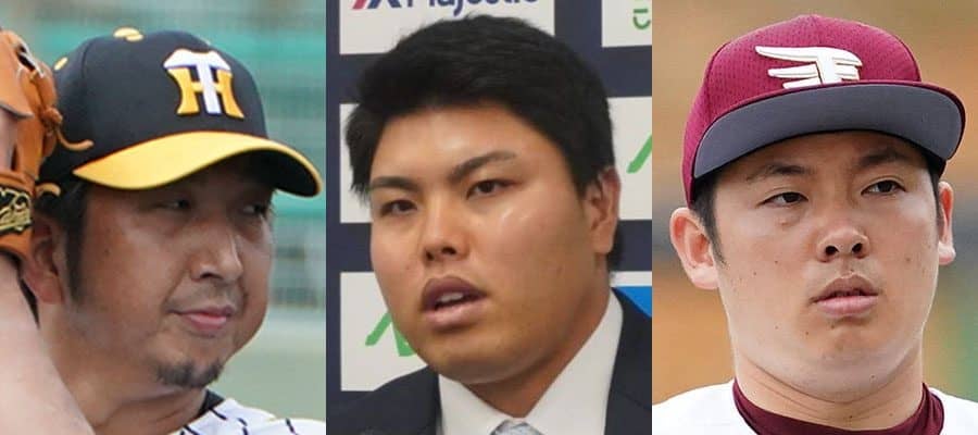 藤川球児氏、西武・平良海馬、楽天・松井裕樹(左から)【写真:荒川祐史、宮脇広久】