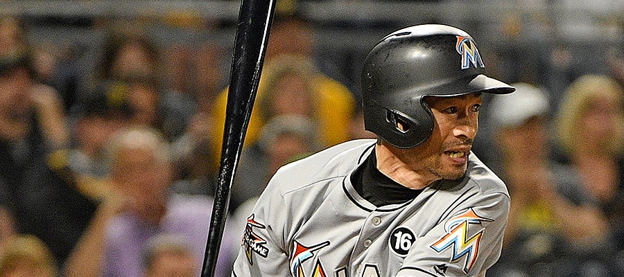 9日(日本時間10日)の敵地パイレーツ戦に代打で出場し、3試合ぶりのヒットとなるタイムリーを放ったマーリンズのイチロー外…