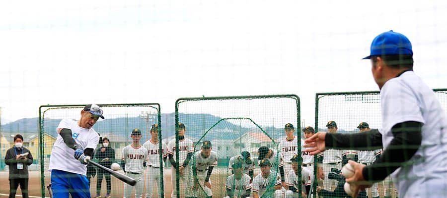 長距離砲のイメージがないイチロー氏が、練習では特大の飛球をガンガン飛ばすことは知られている。生徒は軸足を動かしながら打つイチロー氏が、どのように飛距離を出しているのかに興味を持ったようだ。
