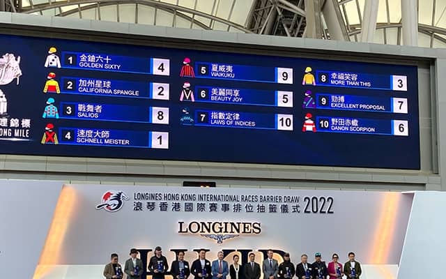 今日行われた香港マイル枠順抽選会の様子、カリフォルニアスパングルは4番ゲート(c)netkeiba.com