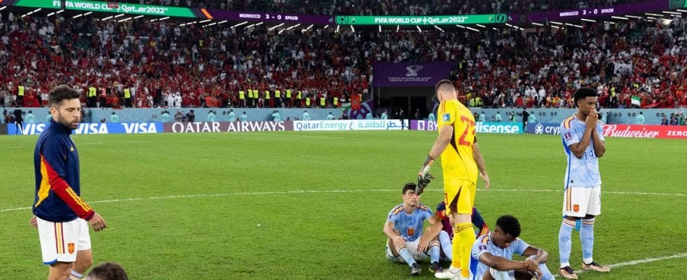 そう、グループ最終戦で日本に負けたおかげで2位通過となり、優勝候補のブラジルやアルゼンチンと決勝まで当たらないブロックに回れたと、火曜の16強対決モロッコ戦までは自らを慰めていたスペインだったんですけどね。試合前夜にも1時間以上のライブ配信に興じ、「チームは昇り調子」と請け合っていたルイス・エンリケ監督もゲンを担いだか、7-0と大勝した初戦のコスタリカ戦から、右SBをアスピリクエタ(チェルシー)ではなく、今大会初出場となるジョレンテに代えただけのスタメンでキックオフ。それがまさか、日本戦後半から発動したボールを持っているだけ、外縁でパスを回しているだけという悪癖がすでに更生不能な域にまで、チームに浸透していたとは!