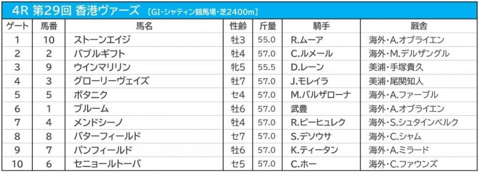 11日、香港・シャティン競馬場にて、香港国際競走が行われる。先陣を切って発走する香港ヴァーズ(GI・芝2400m)は、レ…