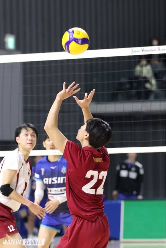 そうですね。明良さんは留学していて、途中から合流してもチームをまとめてくれて、助けてくれる部分も多かったです。トスを全く合わせてなかったのですが(笑)、スパイクミスをしたとしても、明良さんは雰囲気を落とさなかったり、違うことで取り戻してくれたりだとかしてくれていました。学年に関係なくああいう人が1人でも増えれば、来年の早稲田はもっと強くなるし優勝もできると思います。僕自身もリーダーになれるように、チームをまとめられるように頑張りたいと思いました。