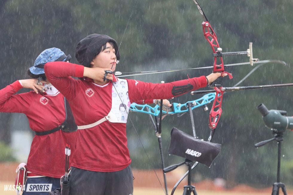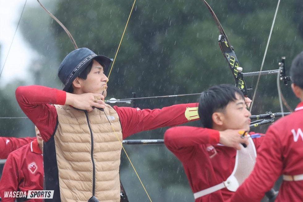 今年で34回目を数える伝統の一戦、早慶定期戦。例年では早慶両校のアーチェリー場で開催していたが、今年は国内有数のアーチェリー場・夢の島公園アーチェリー場で行われた。早大は男子70メートルラウンドでは敗れたものの、女子70メートルラウンド、男子オリンピックラウンド、女子オリンピックラウンドで勝利。大粒の雨が打ちつける中、宿敵相手に3勝を挙げた。