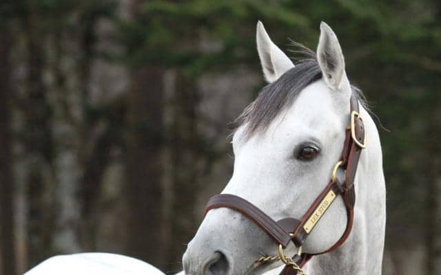オメガパフュームがレックススタッドに到着(c)netkeiba.com