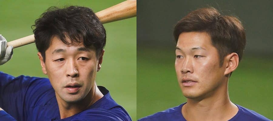 中日から楽天に移籍した阿部寿樹(左)とDeNAに移籍した京田陽太【写真:荒川祐史】