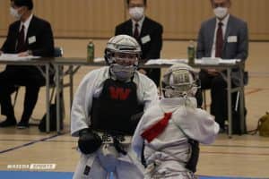 女子トーナメント戦には井上晴未(政経1=神奈川・山手学院)が出場。一本を先制されるも、直後に一本を取り返し、意地を見せた。延長戦に突入したものの、開始直後に一本を取られ、悔しい初戦敗退となった。