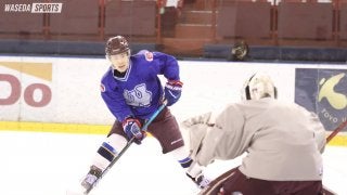 スケート部ホッケー部門の練習は、氷上練習と陸上トレーニングからなる。この日は、4時から5時半まで、試合を意識した氷上練…