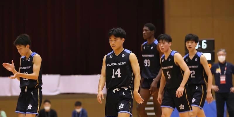 チームの主軸を担う5人は、非常にバランスの取れた布陣だ。持ち前のスピードとクイックネスでコートを駆け回り、味方へパスを配給する谷を司令塔に据え、ゴール下にはリバウンドとブロックショットで相手の攻撃を防ぐ、“プリンス”ことボヌ ロードプリンス・チノンソ(1年)が君臨。アウトサイドには高確率で3ポイントシュートを射抜く霜越洸太朗(3年)、内外問わず得点を奪う赤間賢人(2年)が積極果敢にリングへとアタックする。キャプテンの上野幸太(3年)は縁の下の力持ちとして攻守を支えるだけでなく、霜越と赤間と同様にシュート力もある選手である。