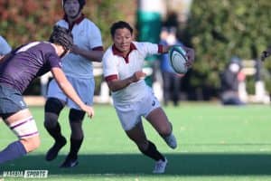 深くへ攻め入るWTB今駒。チャンスメークすると共に自身もトライを挙げる活躍を見せた