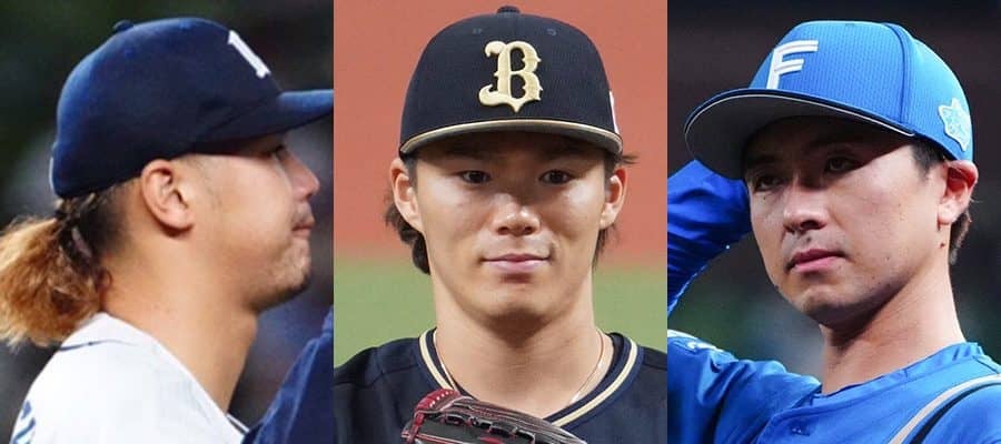 西武・高橋光成、オリックス・山本由伸、日本ハム・上沢直之(左から)【写真:荒川祐史】